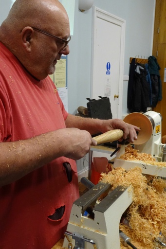 Paul Howard gave us the first demonstration for 18 months. He showed us how to make a Trumkreisel which is a stand on which you can spin a top without it dropping off. Paul showed us a lot of techniques which help to make this more easily as well as showing a colouring technique. Well done Paul.