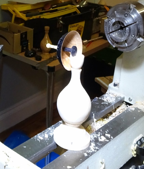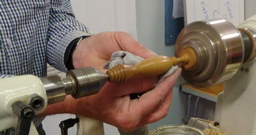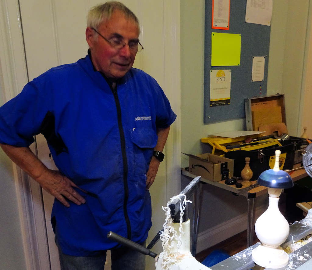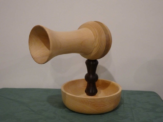 Paul Howard gave us the first demonstration for 18 months. He showed us how to make a Trumkreisel which is a stand on which you can spin a top without it dropping off. Paul showed us a lot of techniques which help to make this more easily as well as showing a colouring technique. Well done Paul.