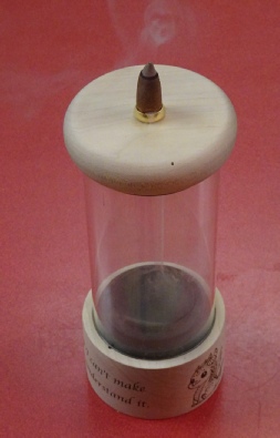 Mike Savager started an evening showing us a glass tube and two small pieces of wood. He started turning the wood and made sure that the wood would fit on the top and bottom of the glass. He then painted parts of the wood black at which point he put one of the pieces of wood into a very interesting machine that then started to electronically put a picture on the wood. It was an electronic pyrography machine.The final activity was to attach an incense burner on the top and light the burner giving a wave of incense into the room. Wow thank you Mike for something very unusual and different.