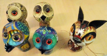 Tic Challis showed us how she used her various capabilities to make the most interesting creatures. She turned she stitched she coloured and used pyrography to make most unusual animals.